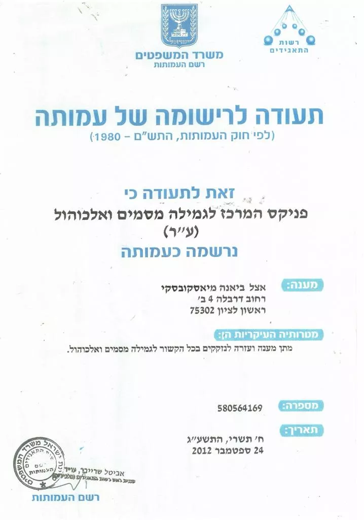 מטרתנו במרכז: תחת הדרכתם של רופאים פסיכיאטרים, פסיכולוגים,עובדים סוציאלים, פסיכותרפיסטים ,מדריכים ושאר הצוות המנוסה והמקצועי של מרכז "פניקס". הטיפול, השיקום והחזרה לחיי החברה יעברו בצורה חלקה,מוצלחת, בסבירות גבוהה שהמטופל ובני משפחתו לעולם לא יחוו יותר את הבעיה האיומה הזאת שנקראת התמכרlת.