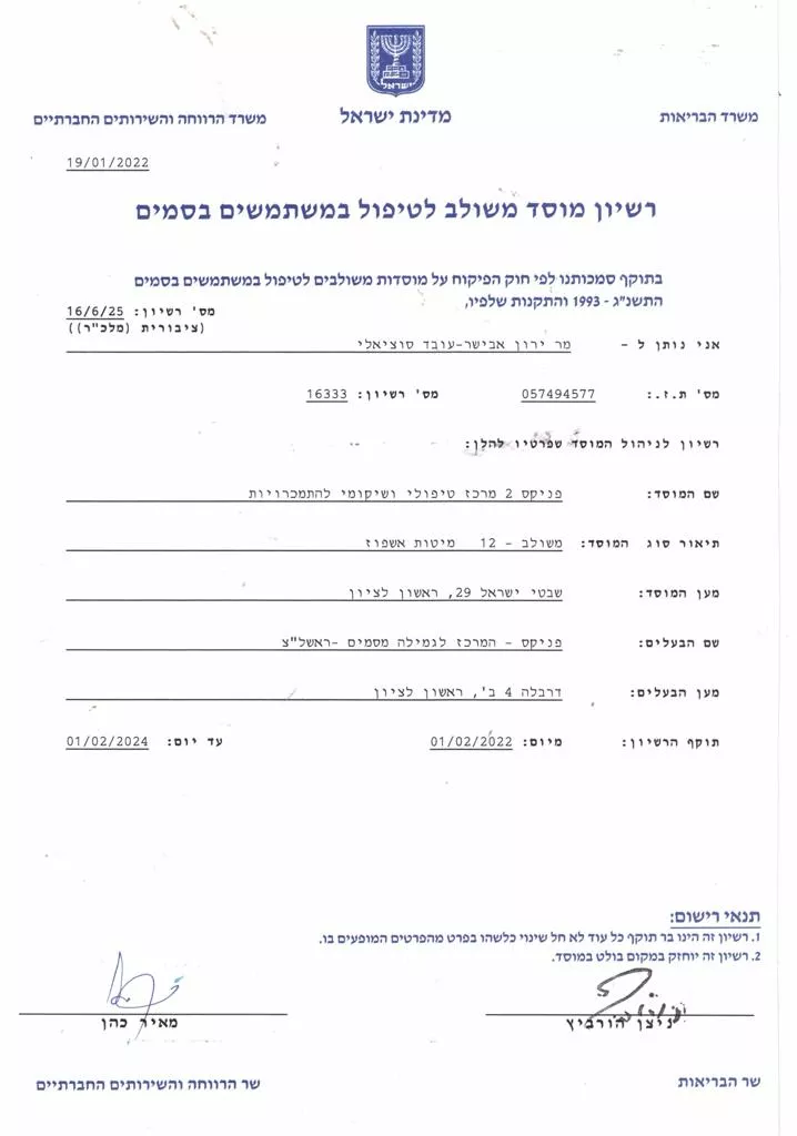 אנו מציעים תוכנית טיפול שהוכיחה את יעלותה לאורך שנים על ידי נתונים סטטיסטיים, אשר הראו שיעורי החלמה גבוהים בקרב מטופלים שלנו.